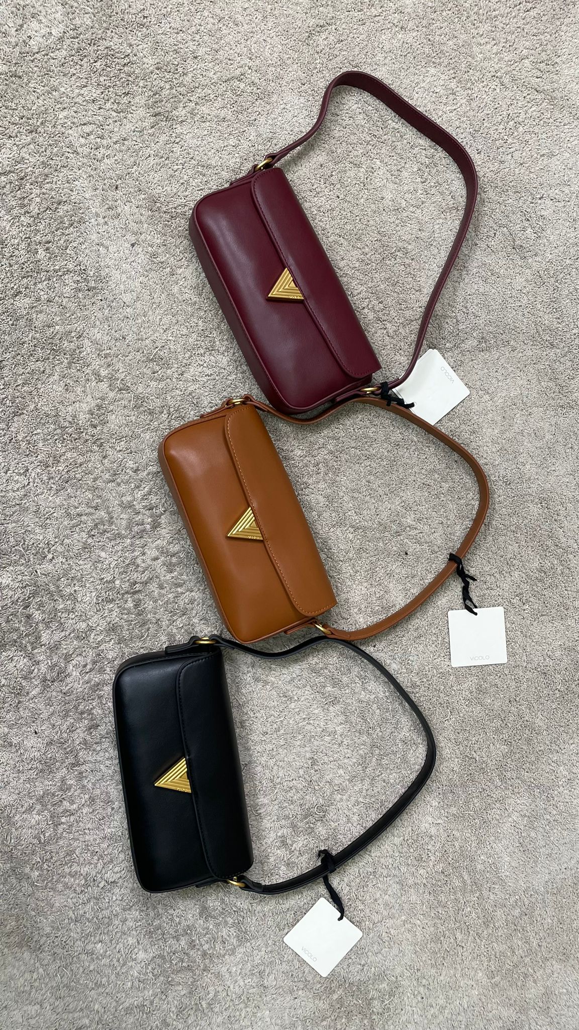 Borsa Pencil Vicolo a spalla in ecopelle. Tracolla in similpelle rigida. Chiusura con bottone a pressione con calamita. Dettaglio logo metal plate Vicolo. Finiture anticate color oro. Tasca interna con cerniera e taschina piatta.