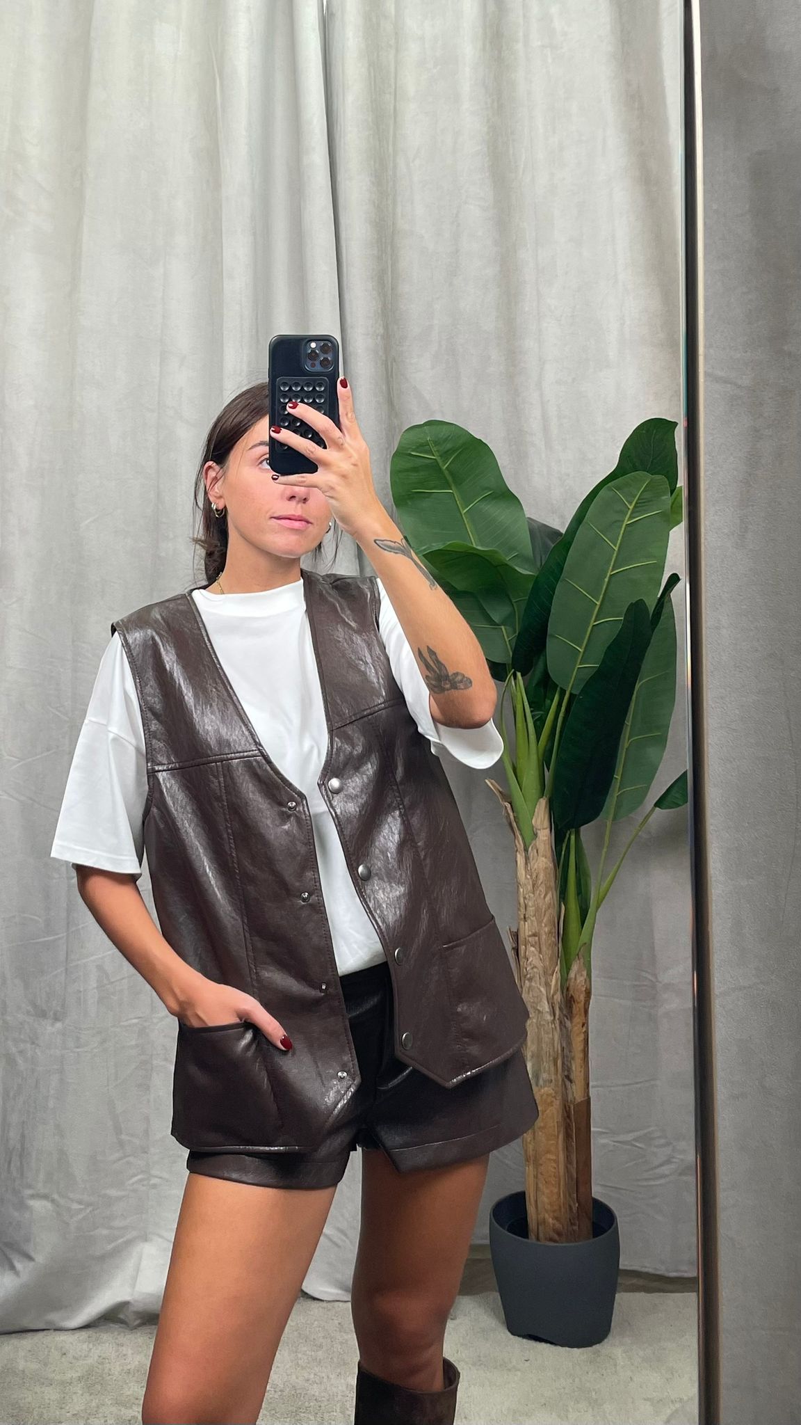 Gilet in eco-pelle ViCOLO moro -TF1294-