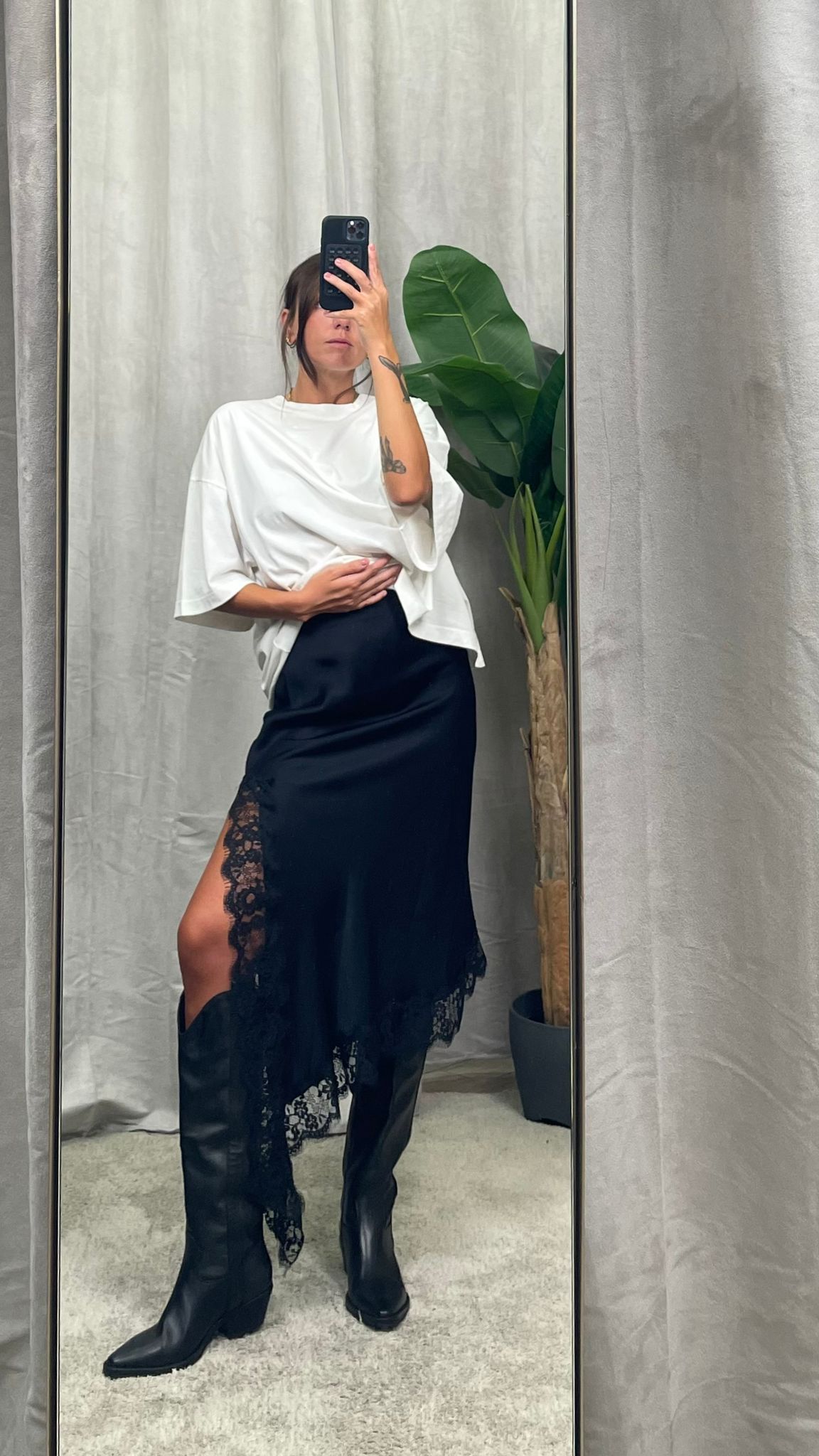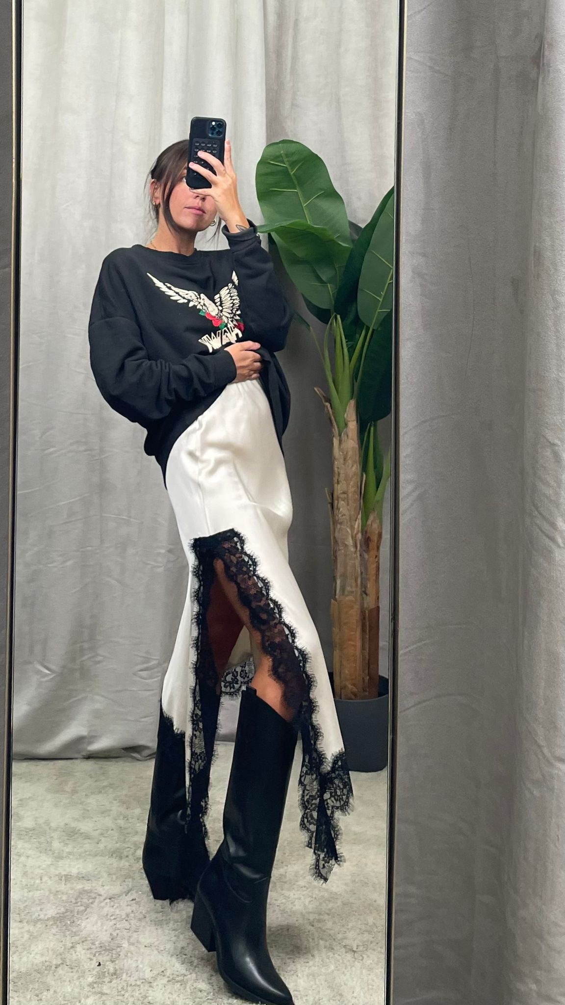 dettagli in pizzo con spacco laterale. Elastico in vita a scomparsa