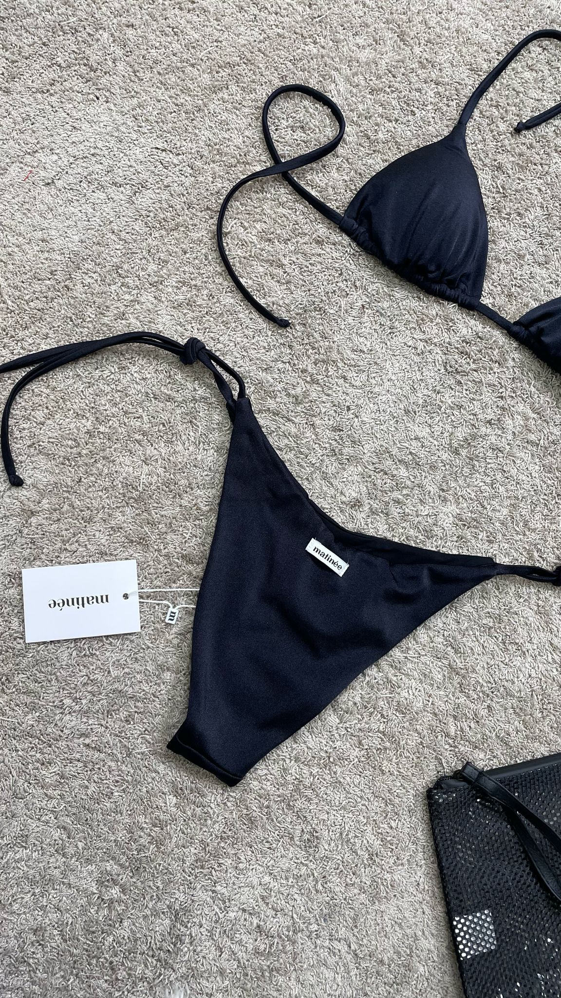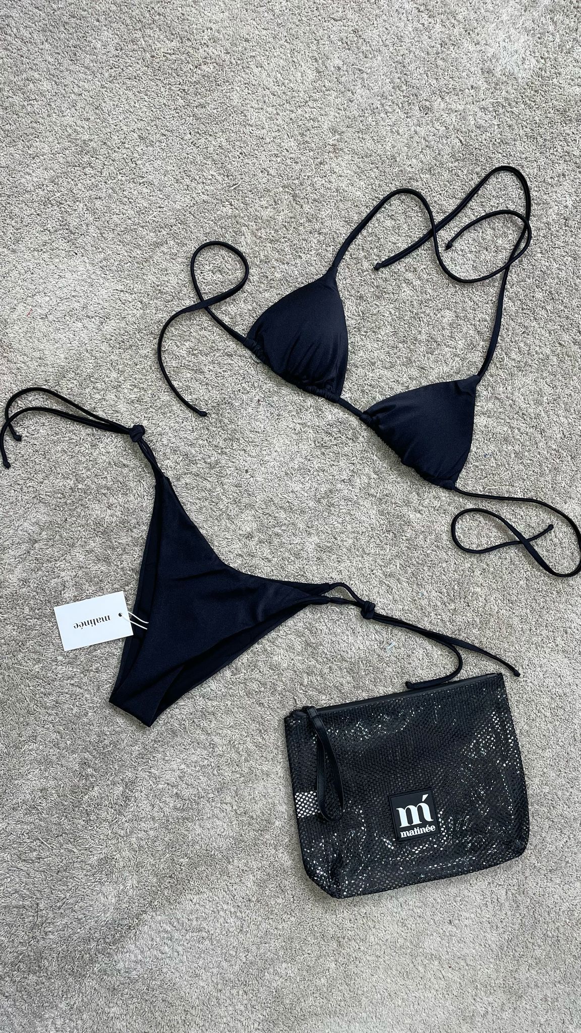 Kate è il bikini must-have dell’estate. Combina un top a triangolo con laccetti regolabili e coppe estraibili e uno slip, anch’esso con laccetti regolabili laterali e una sgambatura a brasiliana. Realizzato in lycra lucida, un materiale elastico e brillante che esalta le forme con eleganza. In tinta unita, nella colorazione nero