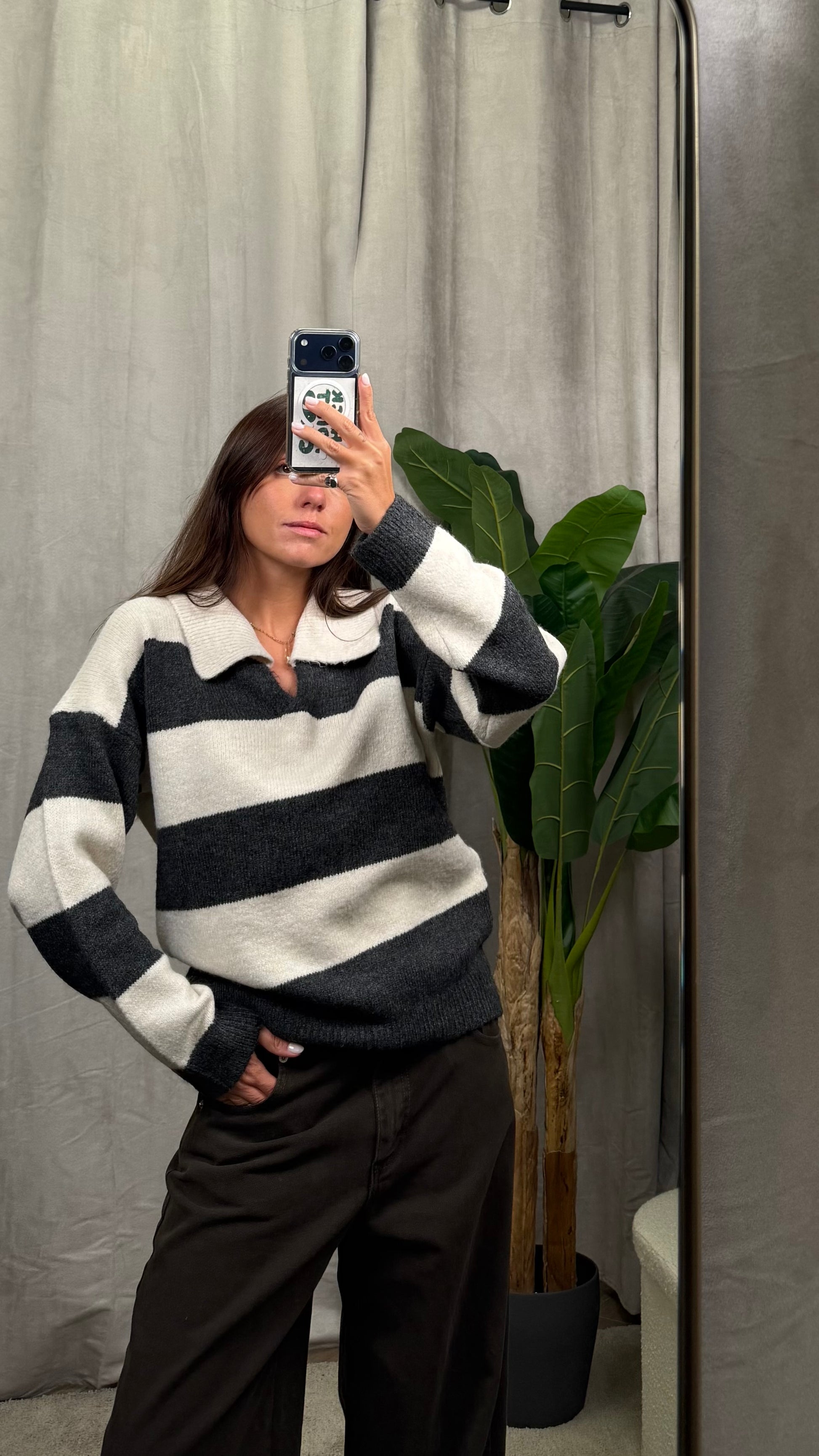 Maglione taglio polo morbido a righe larghe