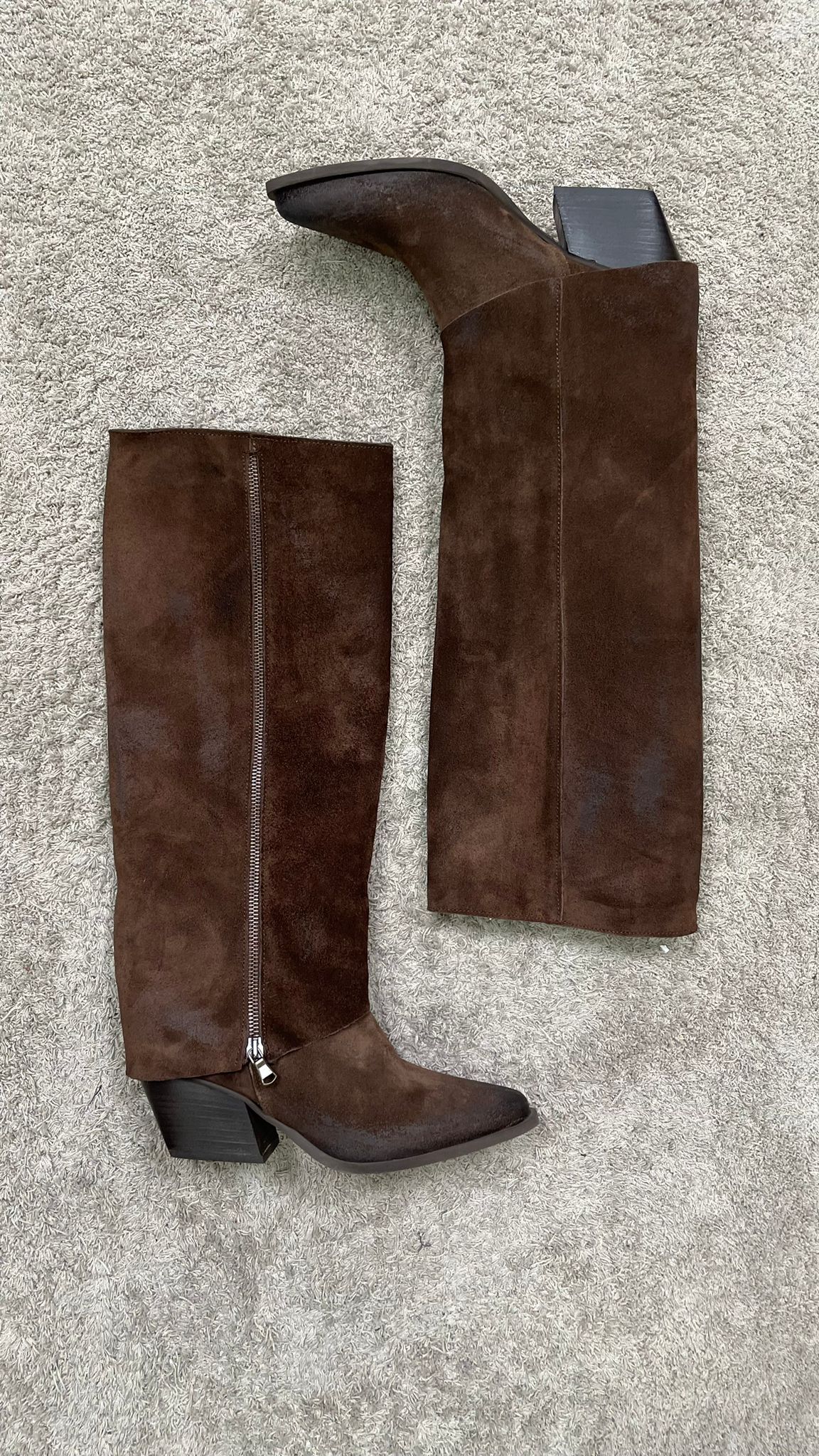 Stivale DivineFollie scamosciato Testa di moro -FAB101-