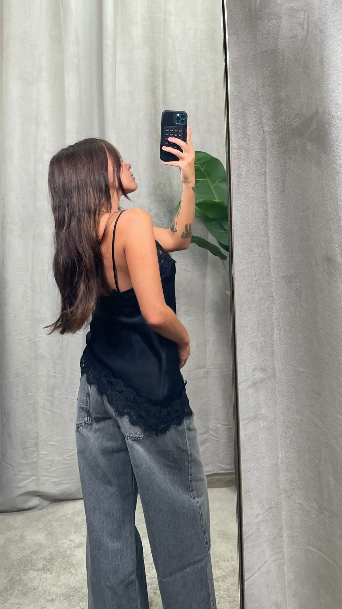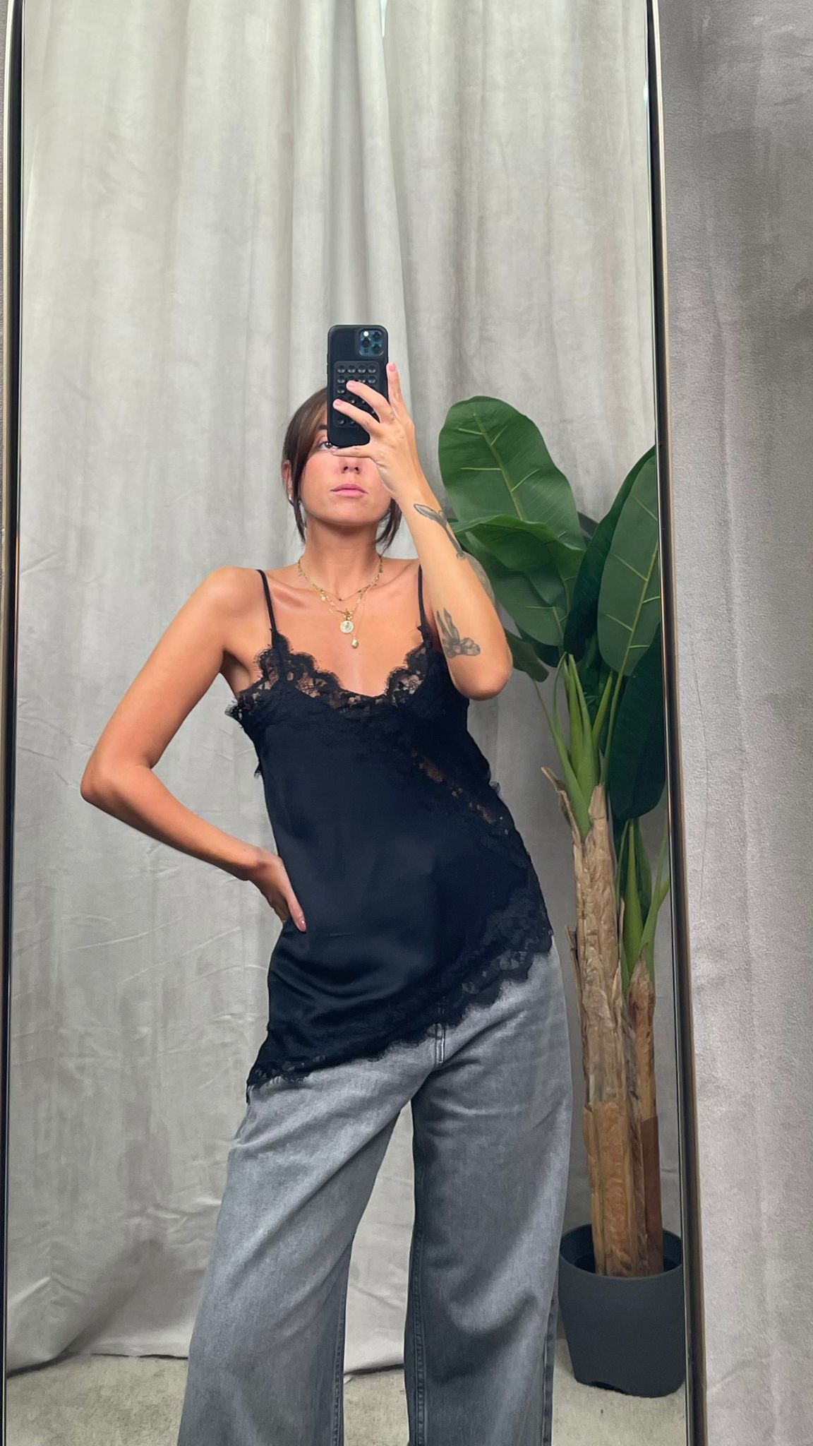 Top pizzo ViCOLO asimmetrico nero -TF0861-
